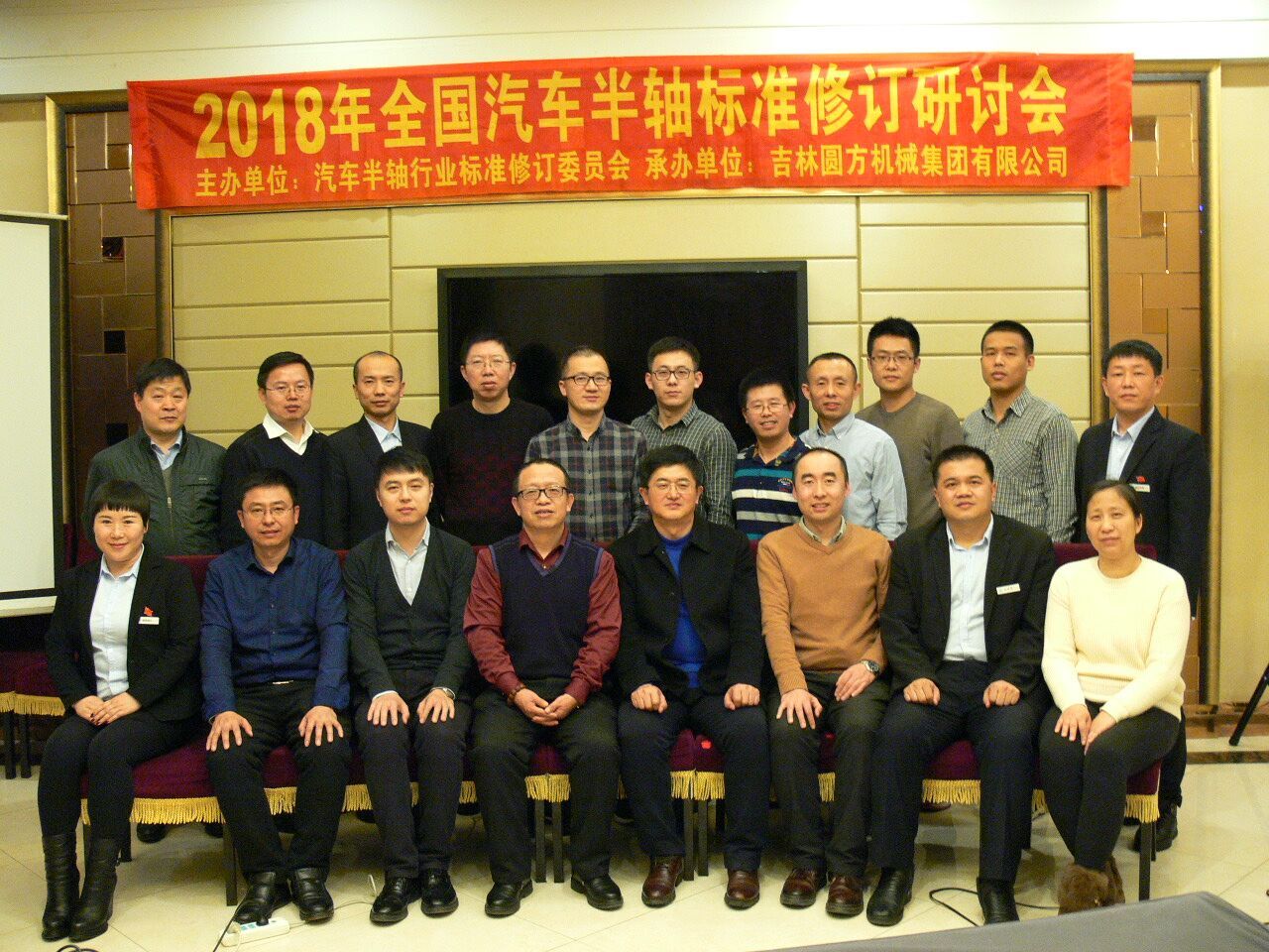 3月10下午,做為全國半軸行業標準起草單位,集團公司承辦了2018年全國汽車半軸標準修訂研討會,會議在美麗江城吉林市舉辦。本次研討會由中國汽車半軸行業標準委員會主辦。全國共有7家企業參會,分別是吉林圓方機械集團有限公司、合肥美橋汽車傳動及底盤系統有限公司、青特集團有限公司、鳳城曙光汽車半軸有限公司、萬向錢潮股份有限公司、遼寧通達軸業有限公司、山東蓬翔汽車有限公司。國家標準委員會分標委秘書長吳亞軍,吉林圓方機械集團有限公司副董事長鐘致濤、總經理張學良、副總經理蔡永和,一汽集團專家組成員、北華大學教授時君友及各企業技術負責人參加了會議。會議由一汽解放公司專家組成員李浩亮主持,國家標準委員會一汽分標委秘書長吳亞軍在會上做了講話。集團公司副董事長鐘致濤代表吉林圓方機械集團有限公司作了歡迎致辭。表達了要做好行業標準化工作需要協會、專家、客戶和制造企業力量的凝集,大家要一起深化認識,加強企業技術融合、凝聚力量,共同努力推動全國半軸標準化工作提升質量、上水平,達到合作共贏共享成果的目標。并對熱情參與的各個企業表示感謝。